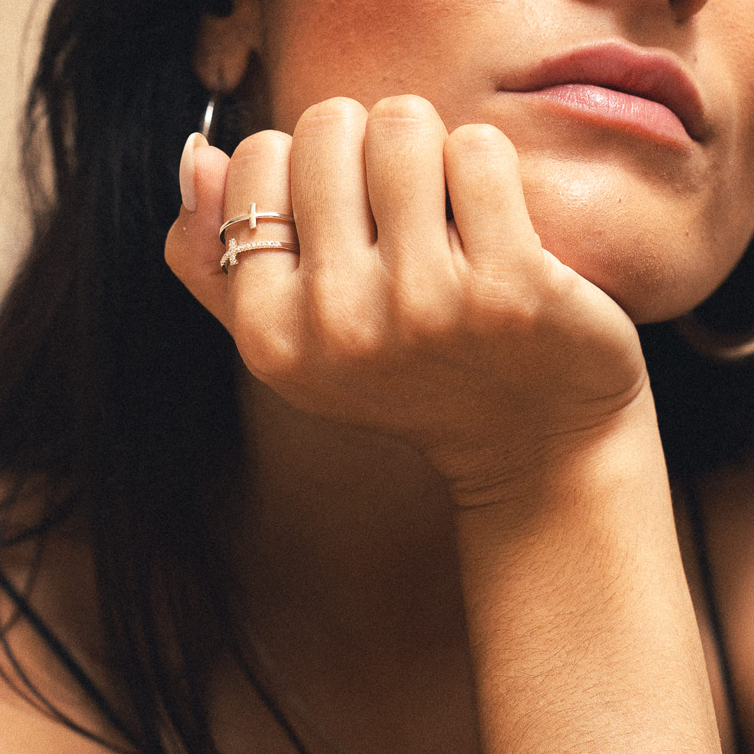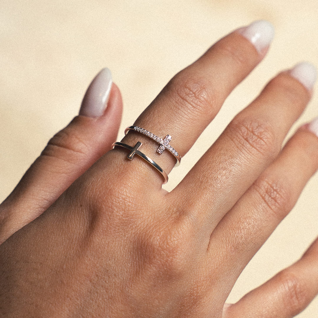 La bague double croix scintillante est un symbole de foi et d'élégance.