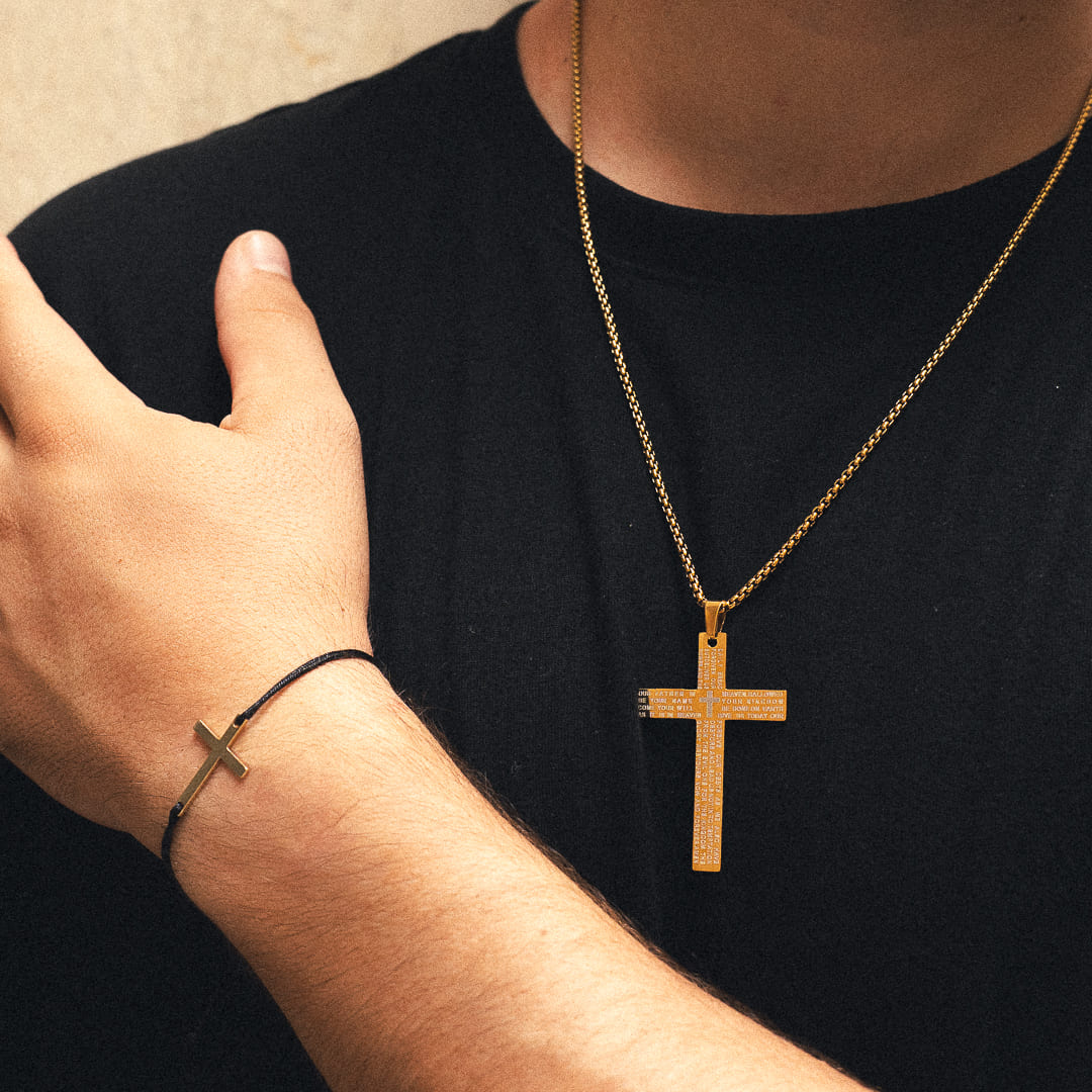 Klassische Kreuzanhänger-Halskette für Männer mit biblischem Gebet graviert: die perfekte Mischung aus Eleganz und Spiritualität