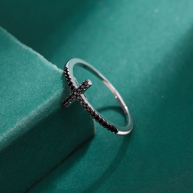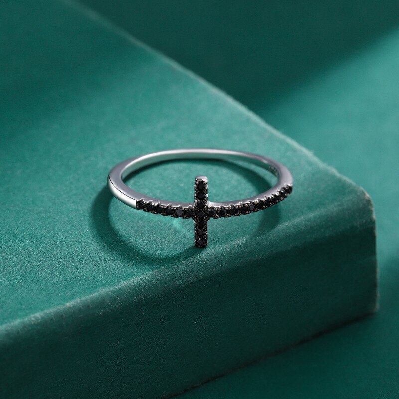 Tragen Sie diesen Gothic Cross Ring, der das Geheimnis des Gothic-Stils mit dem Glanz funkelnder schwarzer Diamanten verbindet.