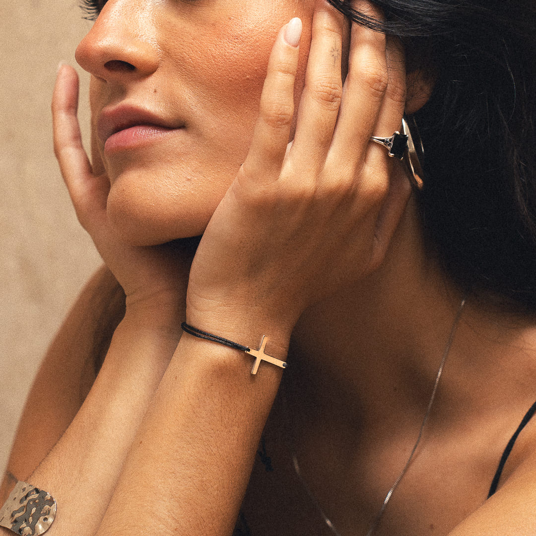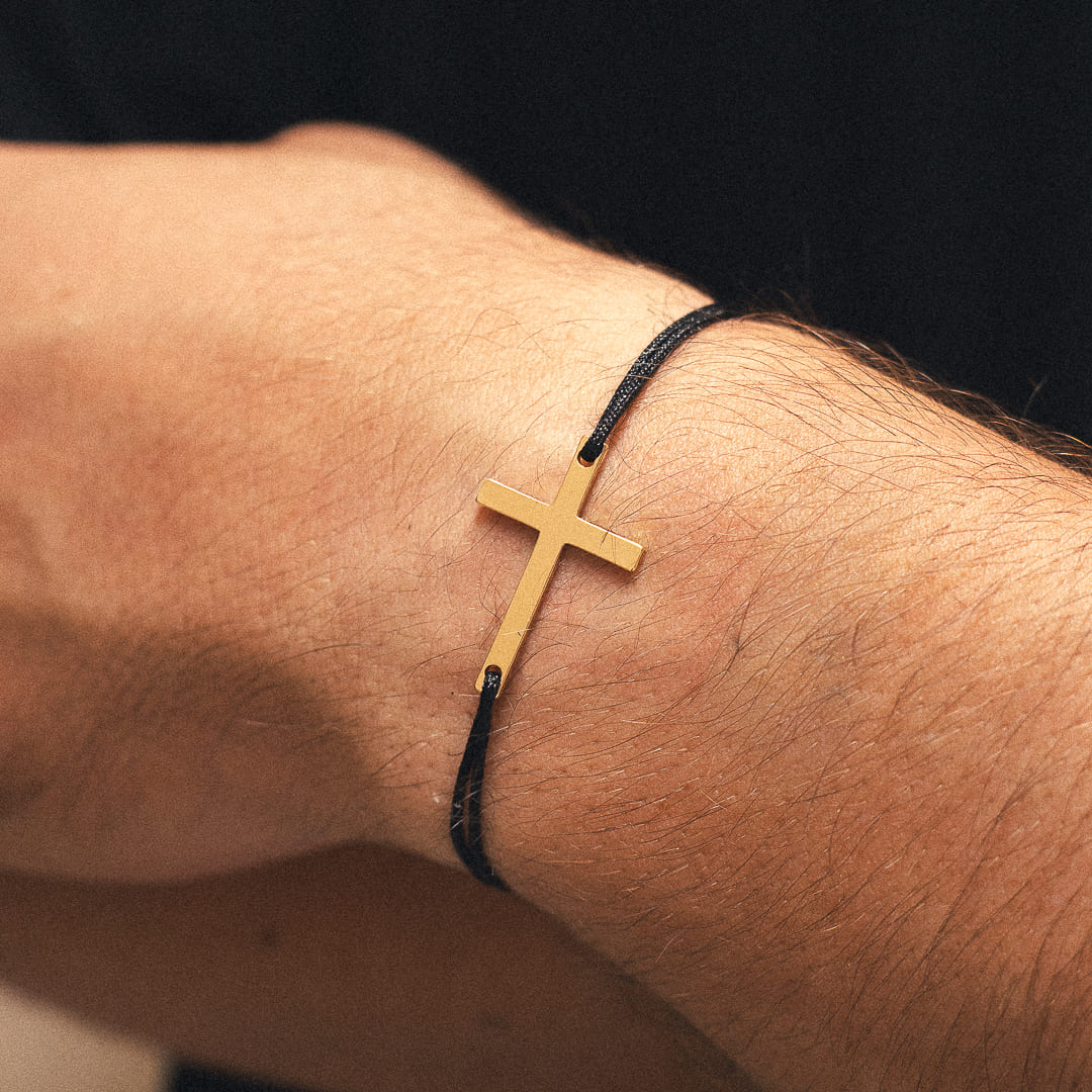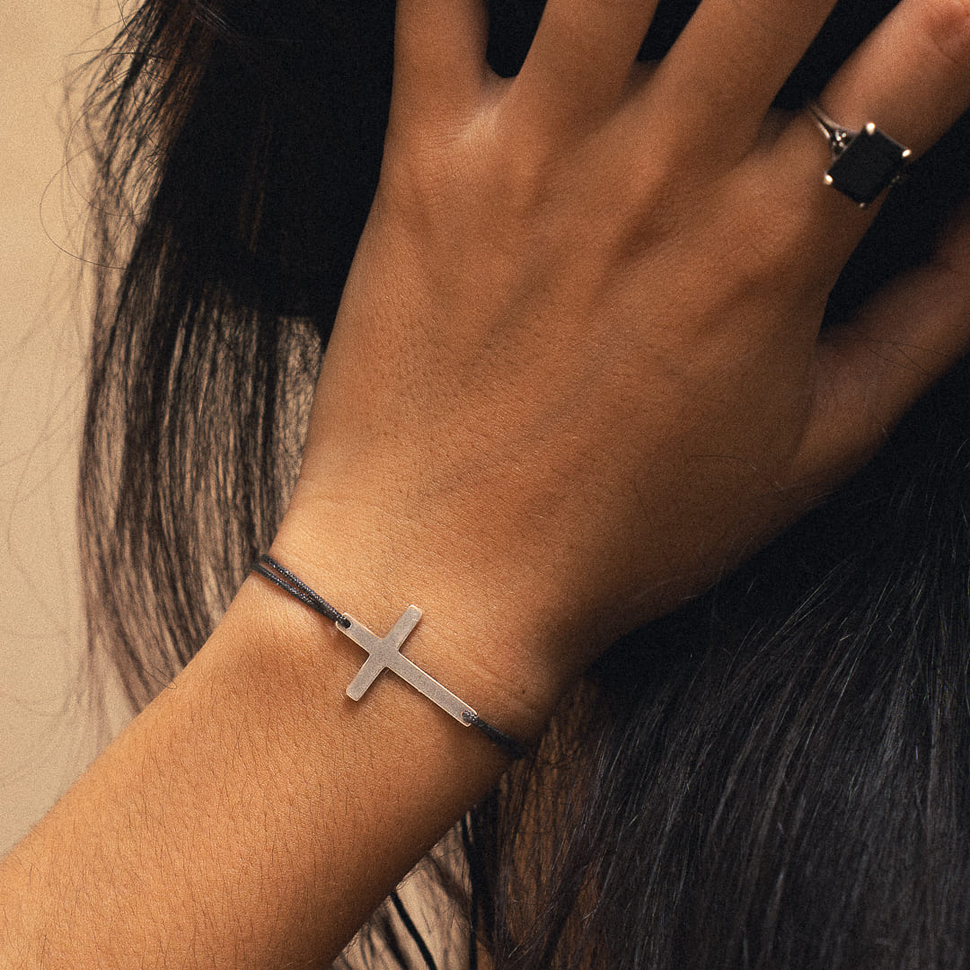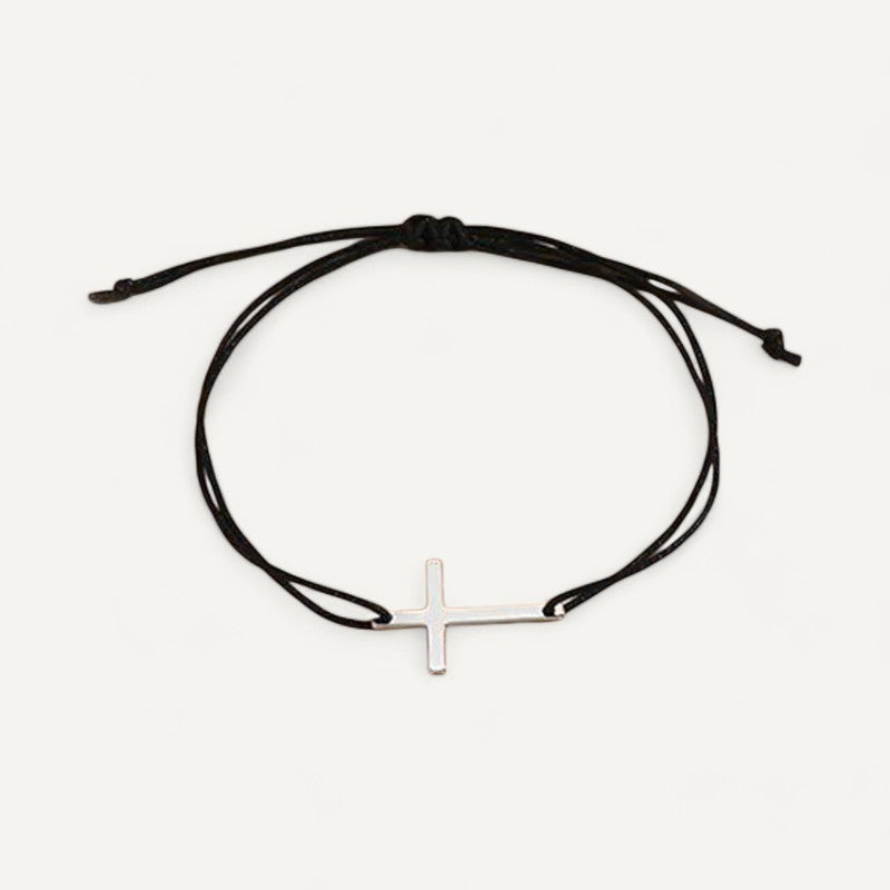 Verleihen Sie Ihrem Handgelenk mit unserem Kreuzarmband aus Schnur einen Hauch von Eleganz, eine perfekte Fusion aus Spiritualität und modernem Stil.