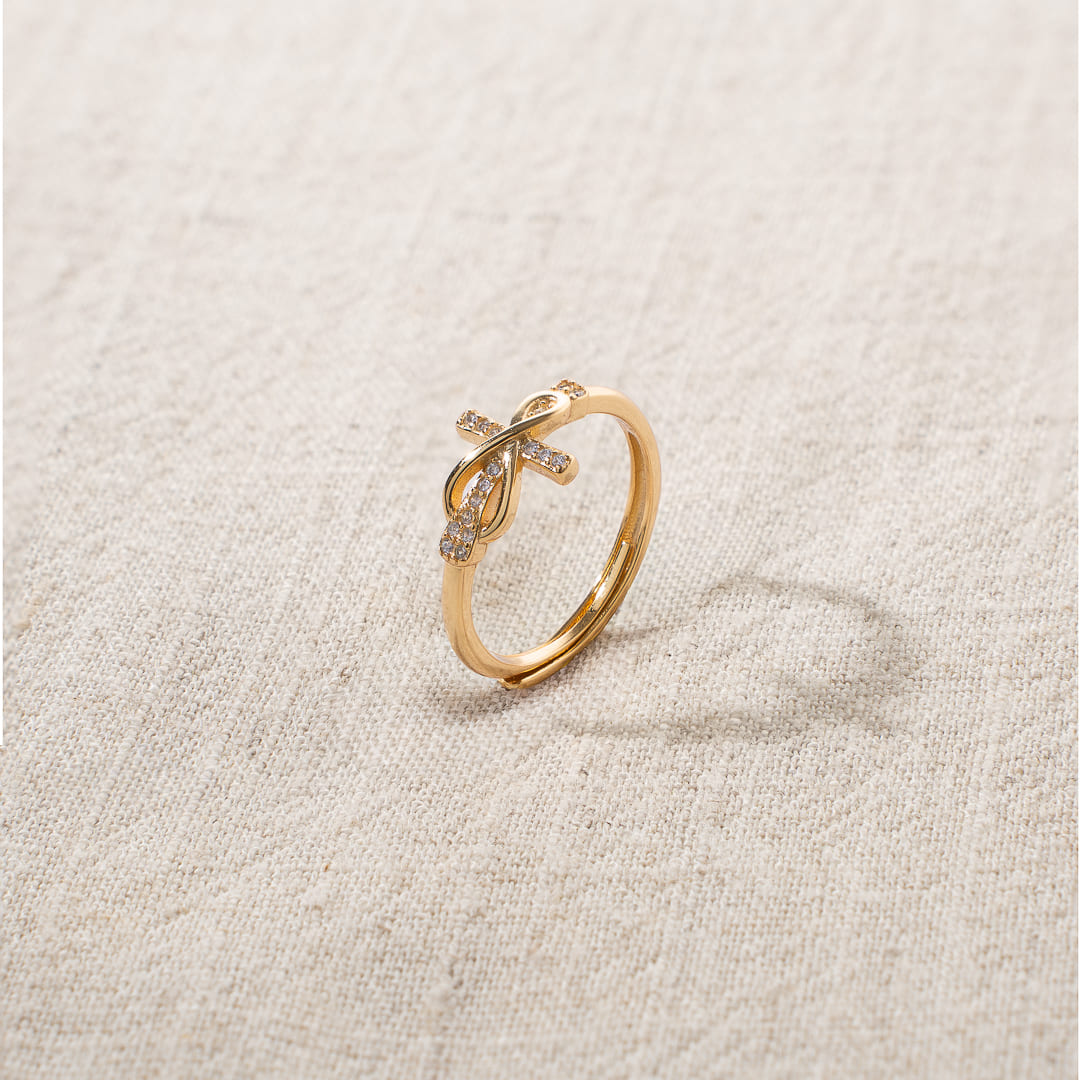 Entdecken Sie den funkelnden Kreuz-Liebe-Ring, verziert mit strahlenden Kristallen.