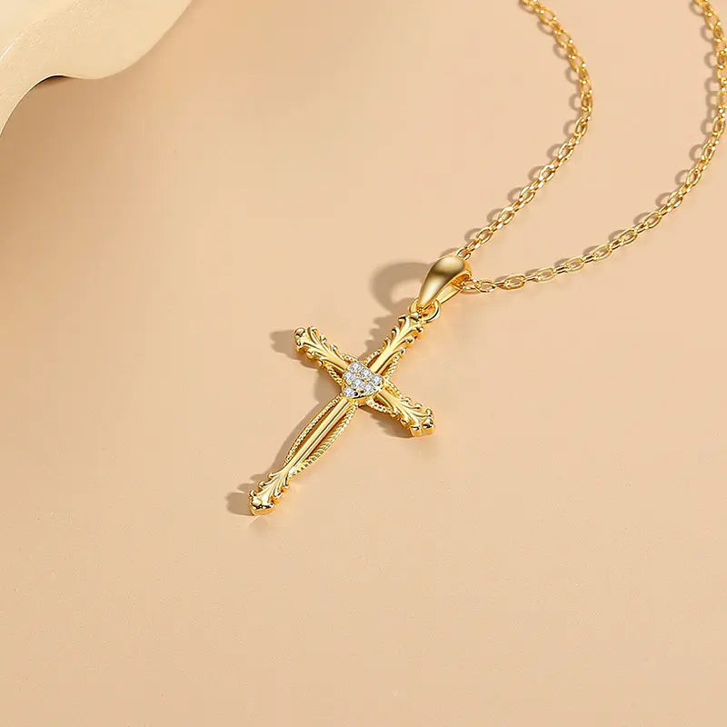 • Design: Kreuz mit filigranen Details und funkelnden Zirkonia-Steinen