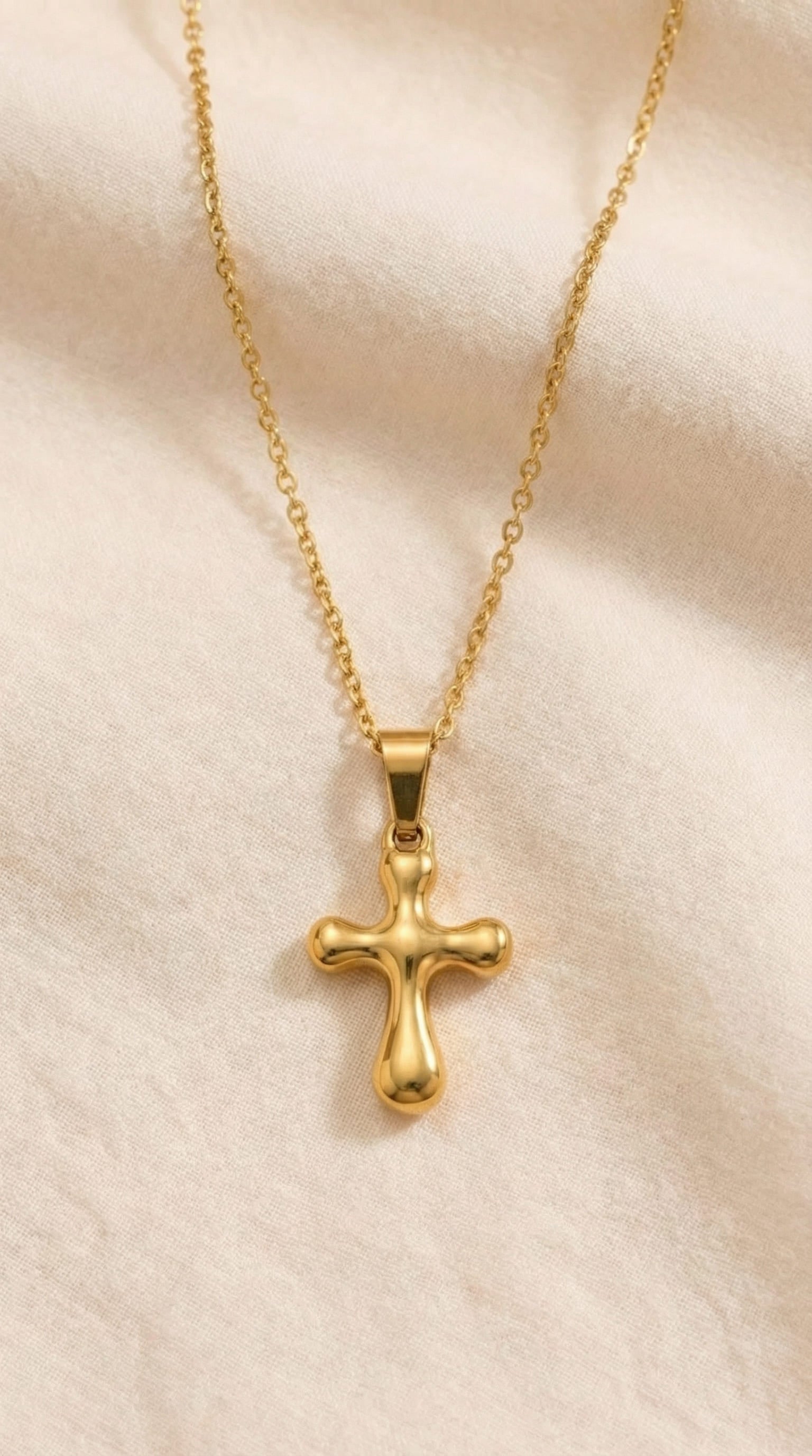 Le Collier Croix Doré aux Courbes Arrondies incarne une interprétation contemporaine d’un symbole intemporel. Son pendentif croix aux formes bombées et harmonieuses apporte une touche de douceur et de modernité, tout en conservant toute la puissance spirituelle de la croix.
