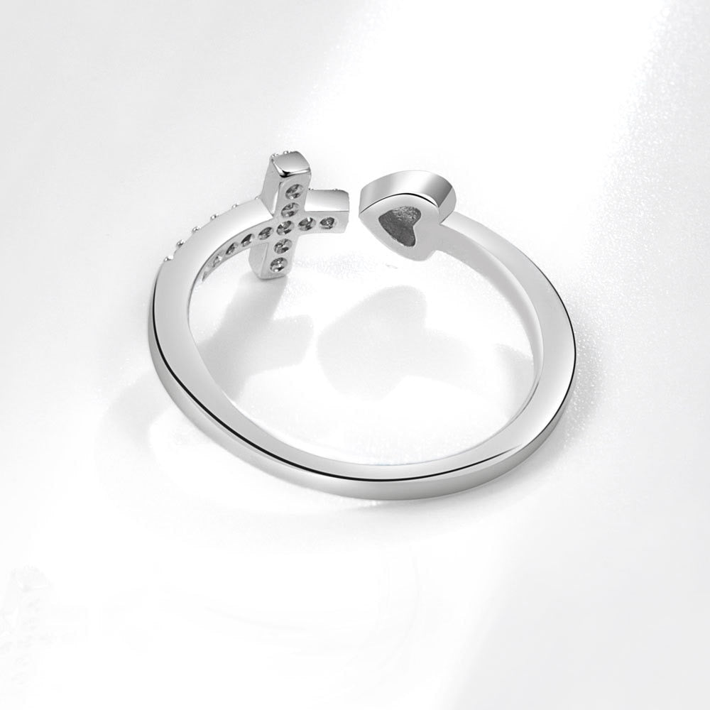 Discover this S925 Silver Cross and Heart Ring, a creation that unites faith and love in an elegant design.