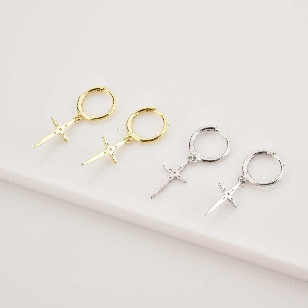 This piece of jewelry is made from 925 sterling silver, and it is also possible to have it plated with gold according to your preference. Each earring consists of a ring decorated with a star-shaped cross.
