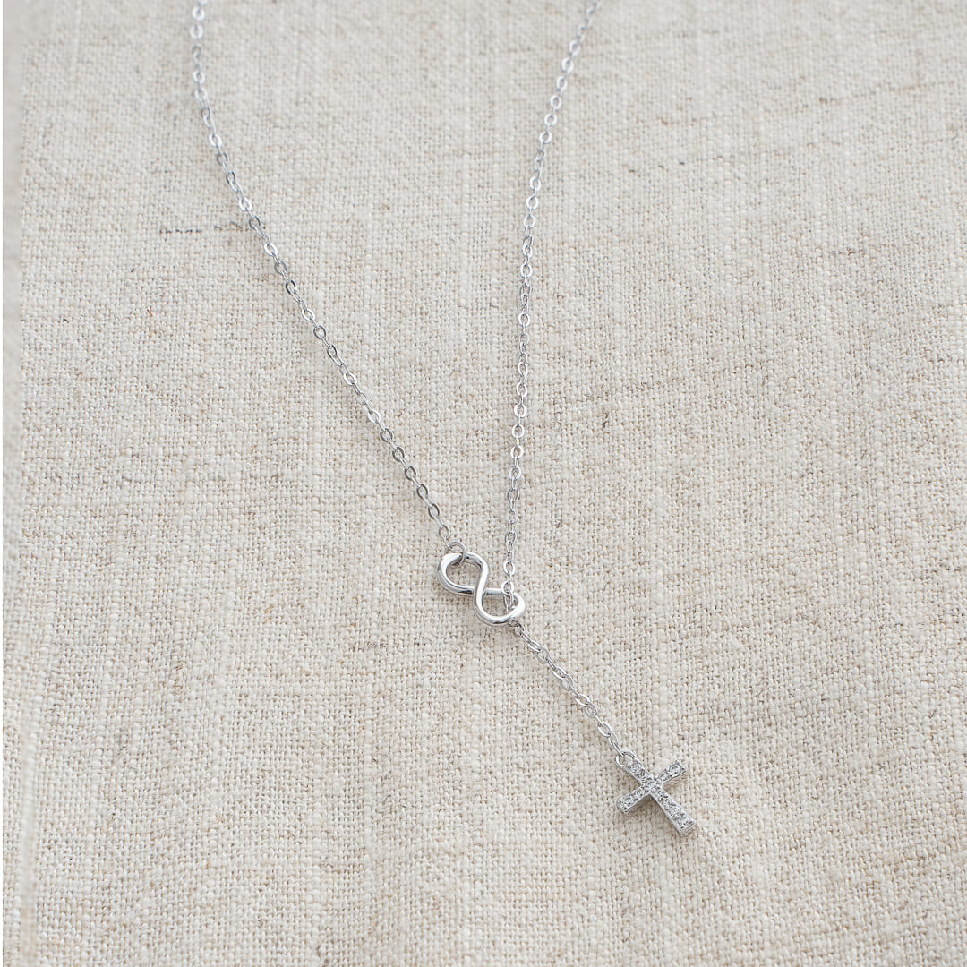 Cross necklace with infinite symbol