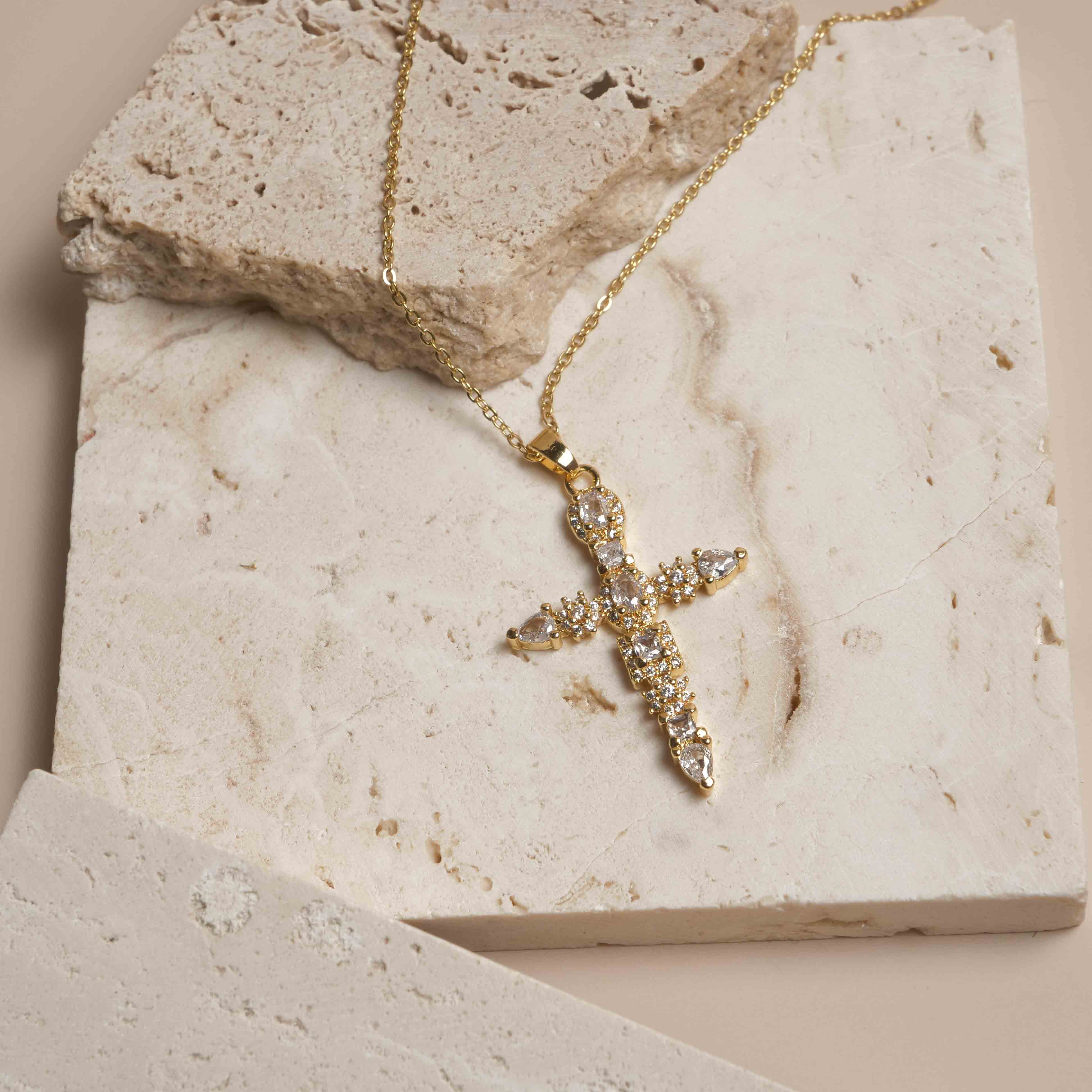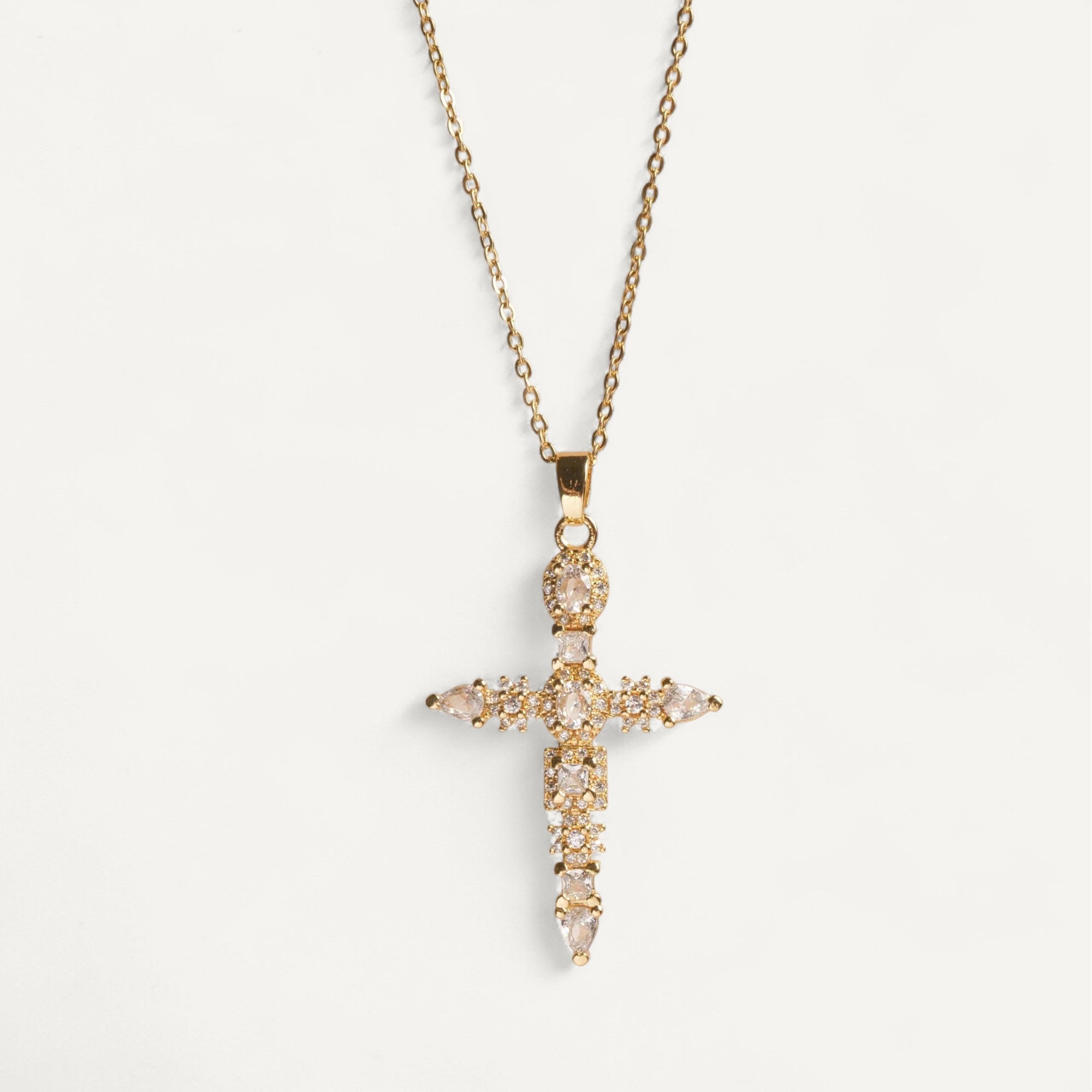 Affirmez votre style et votre foi avec ce somptueux Collier Croix Brillance Divine entièrement serti de pierres scintillantes.