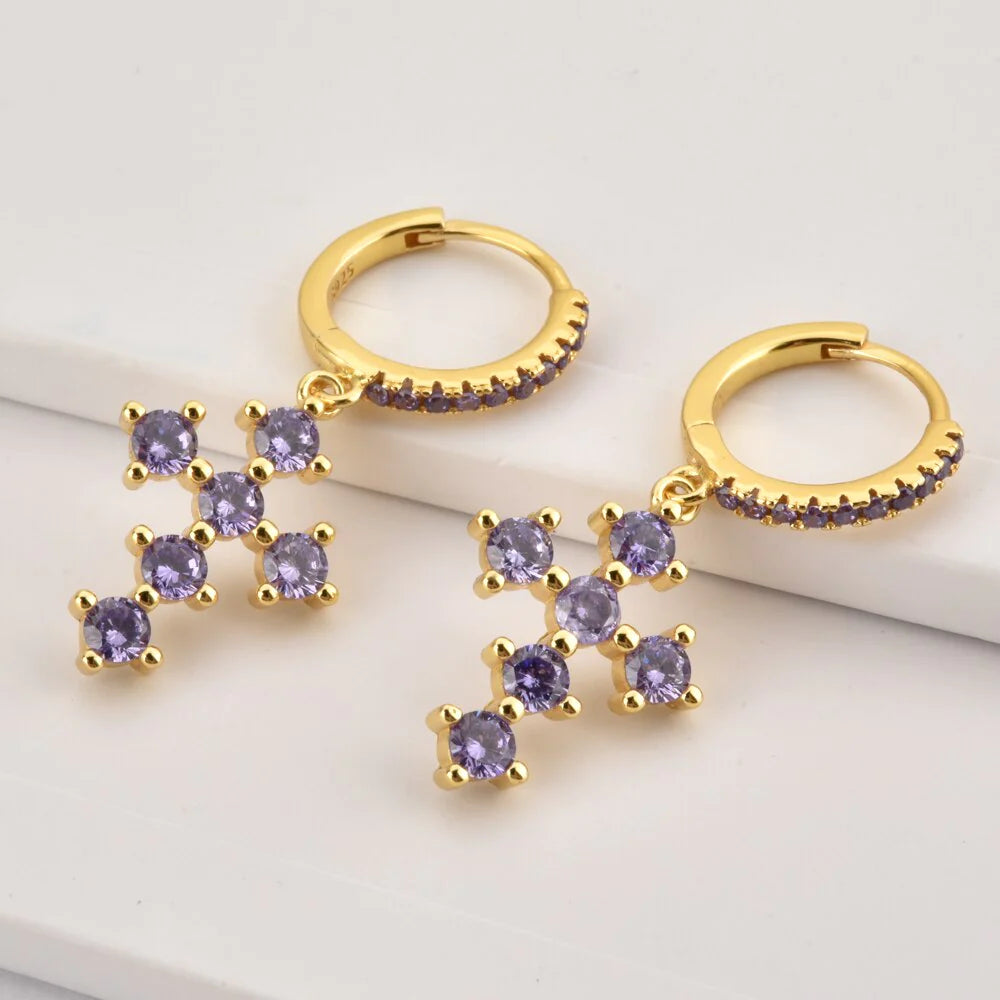 Chaque boucle d'oreille arbore une croix soigneusement ciselée en argent sterling 925, sublimée par une pierre mauve en son centre.