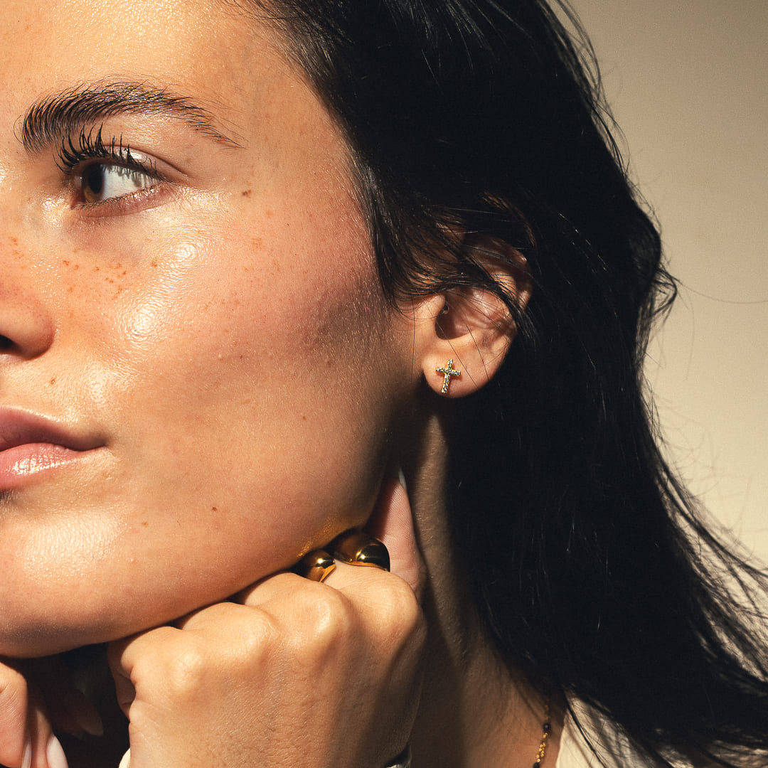 Soyez resplendissante avec ces boucles d'oreilles croix incrustées de strass.