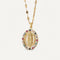 Son pendentif ovale aux détails raffinés est suspendu à une chaîne dorée à maillons ajourés, parfaite pour sublimer votre foi avec discrétion et éclat.
